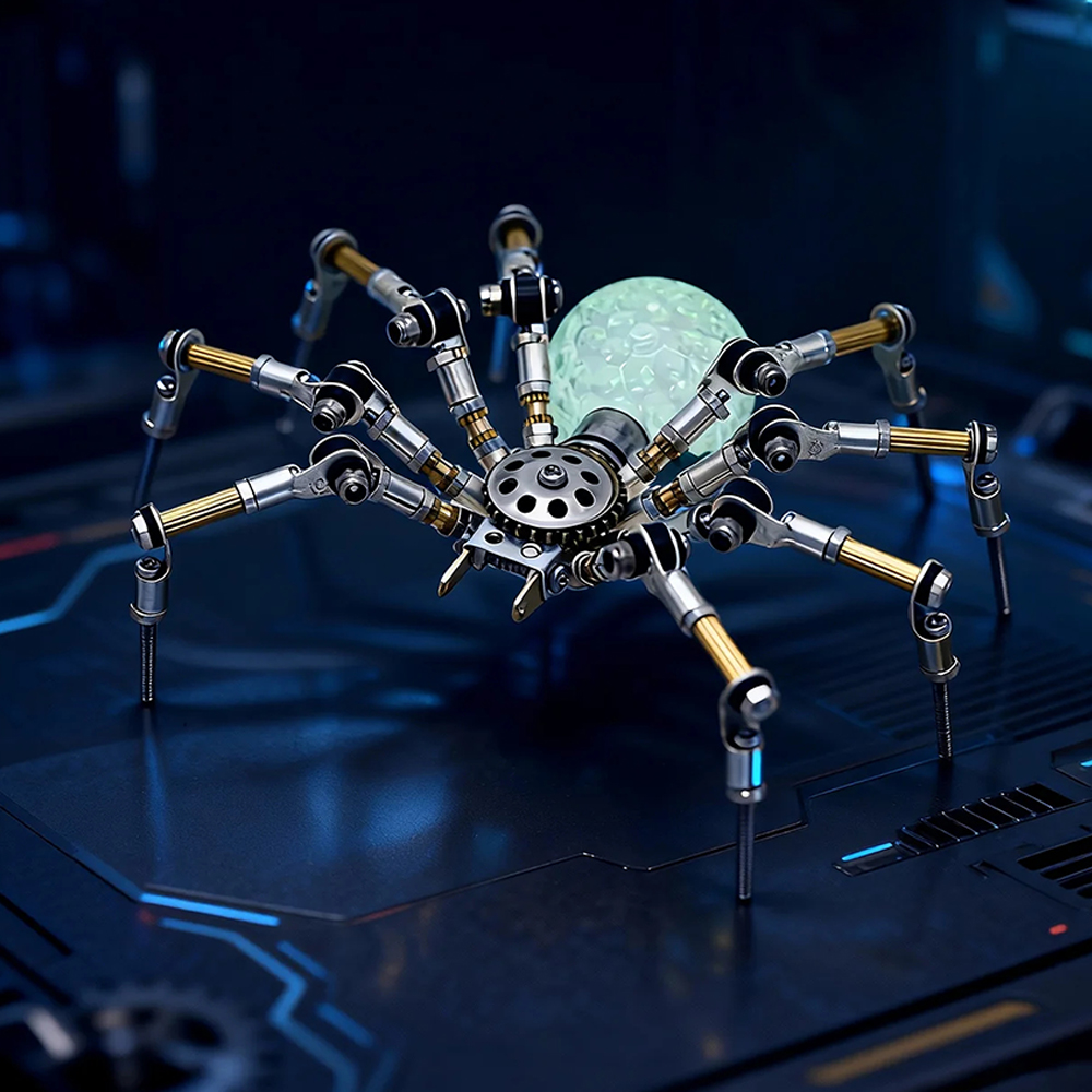 NIKOLATOY Mechanical Spider Model DIY Assembly Kits Science Toy LED Light Creative Desktop Ornaments – Type A